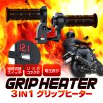 バイク用グリップヒーター +電圧表+USBポート 3IN1 防寒ホットグリップ 左右セット 温度調整可 USB 2.1A 電圧表示 Φ22mm 汎用品 ツーリング LP-GHPRO3IN1